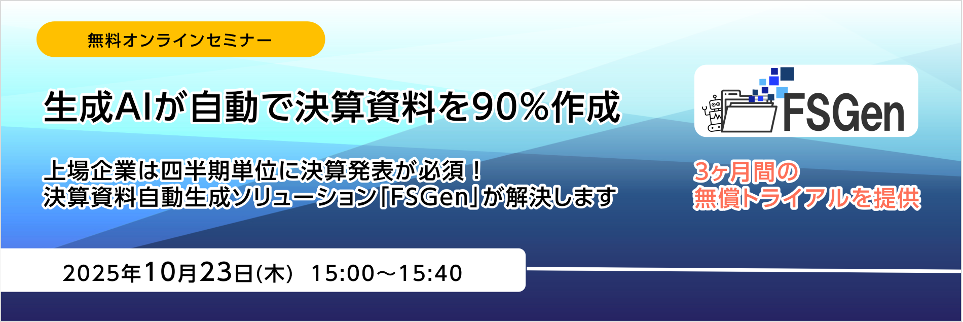 - 無料オンラインセミナー「生成AIが自動で決算資料を90%作成」開催のお知らせ